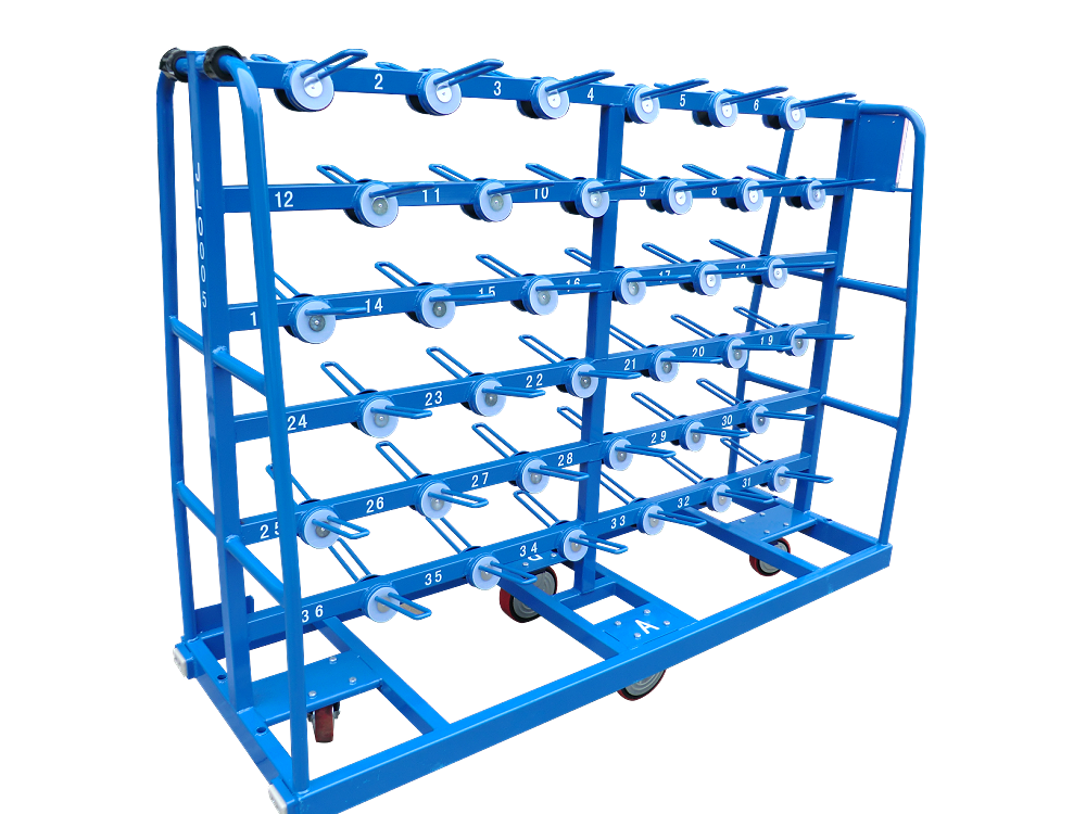 为了物流周转运输方便,纺织丝车底部用的是聚氨酯脚轮
